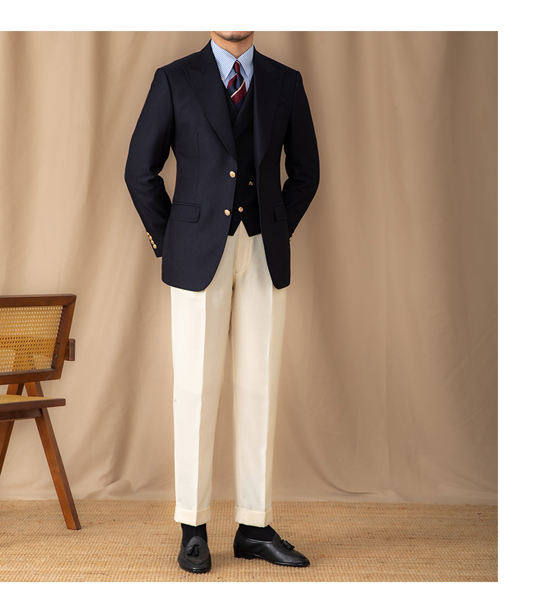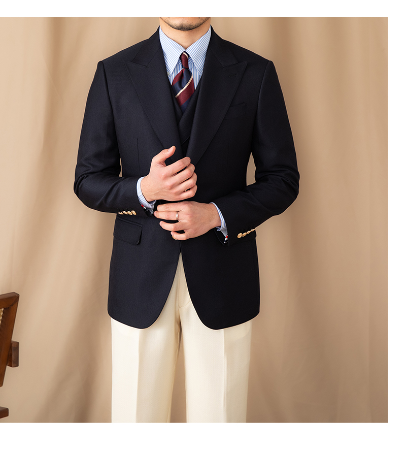 Collar Type: Peak lapel (9-11cm width)