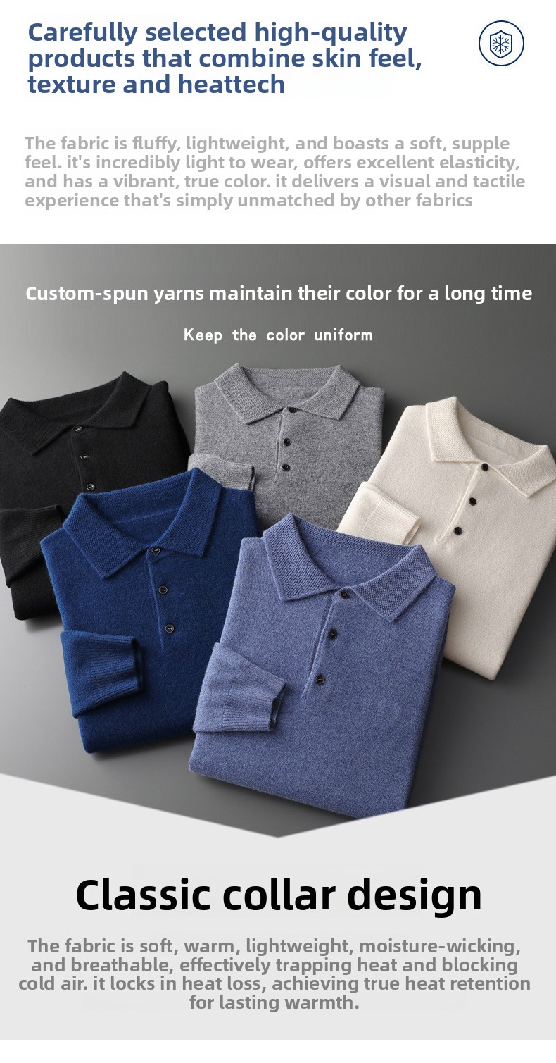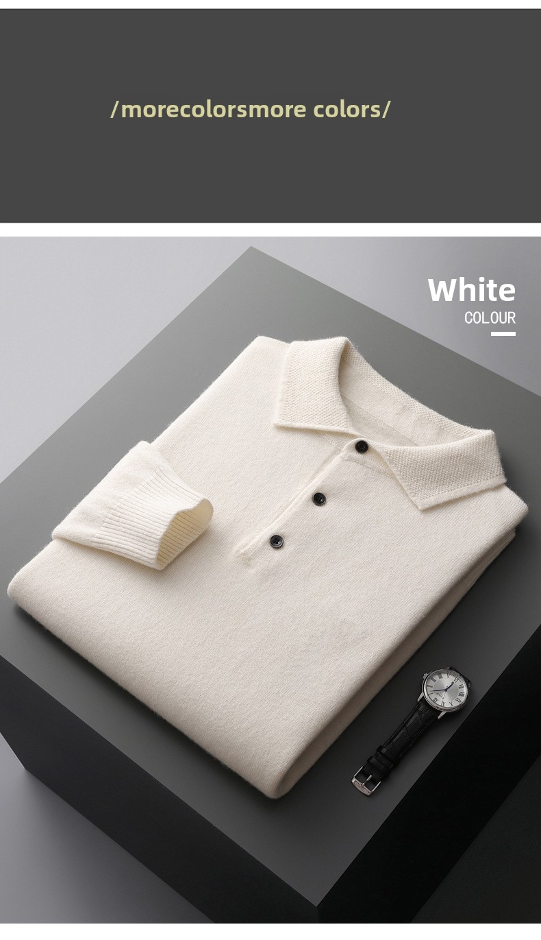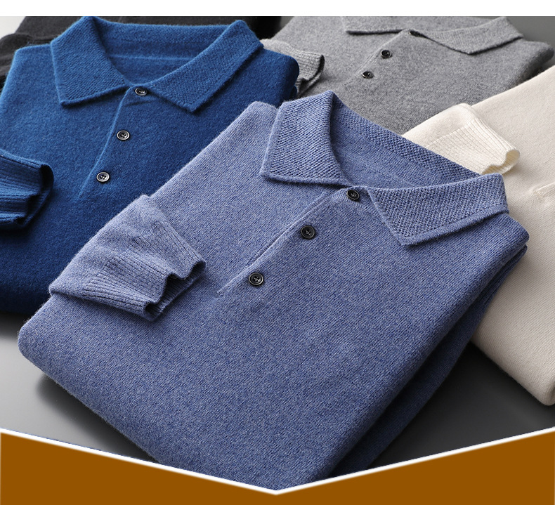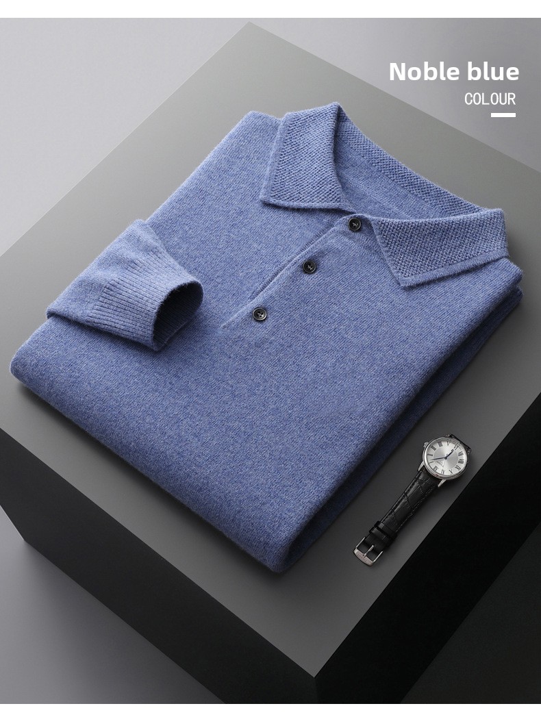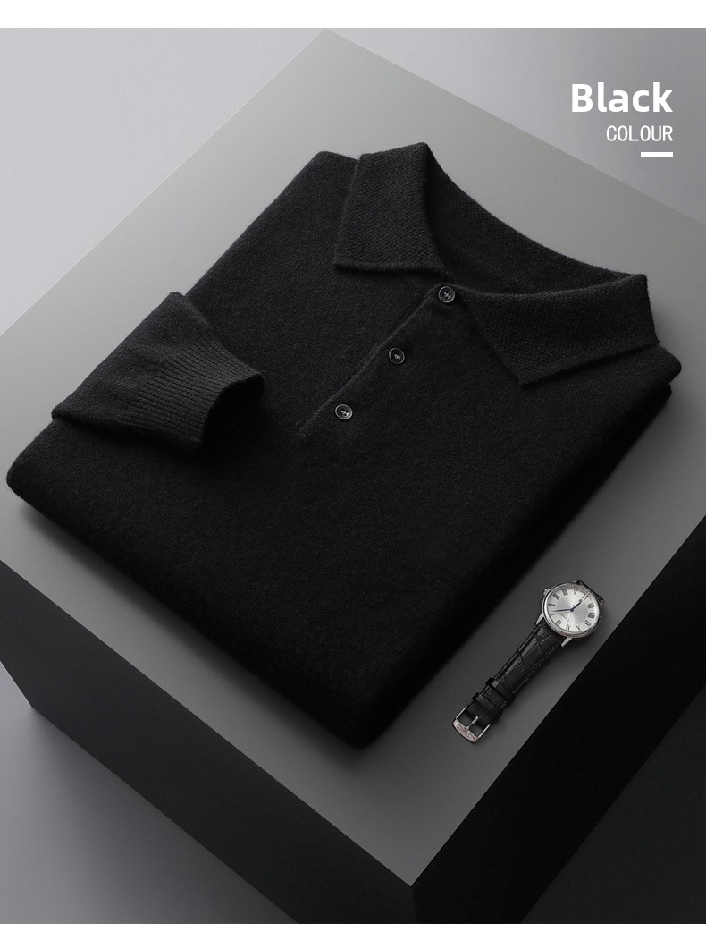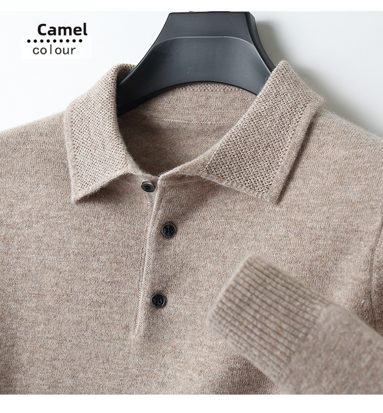 Men's Pure Wool Polo Collar Knit Sweater