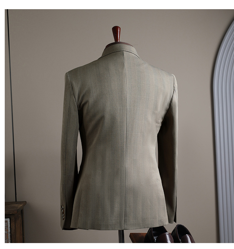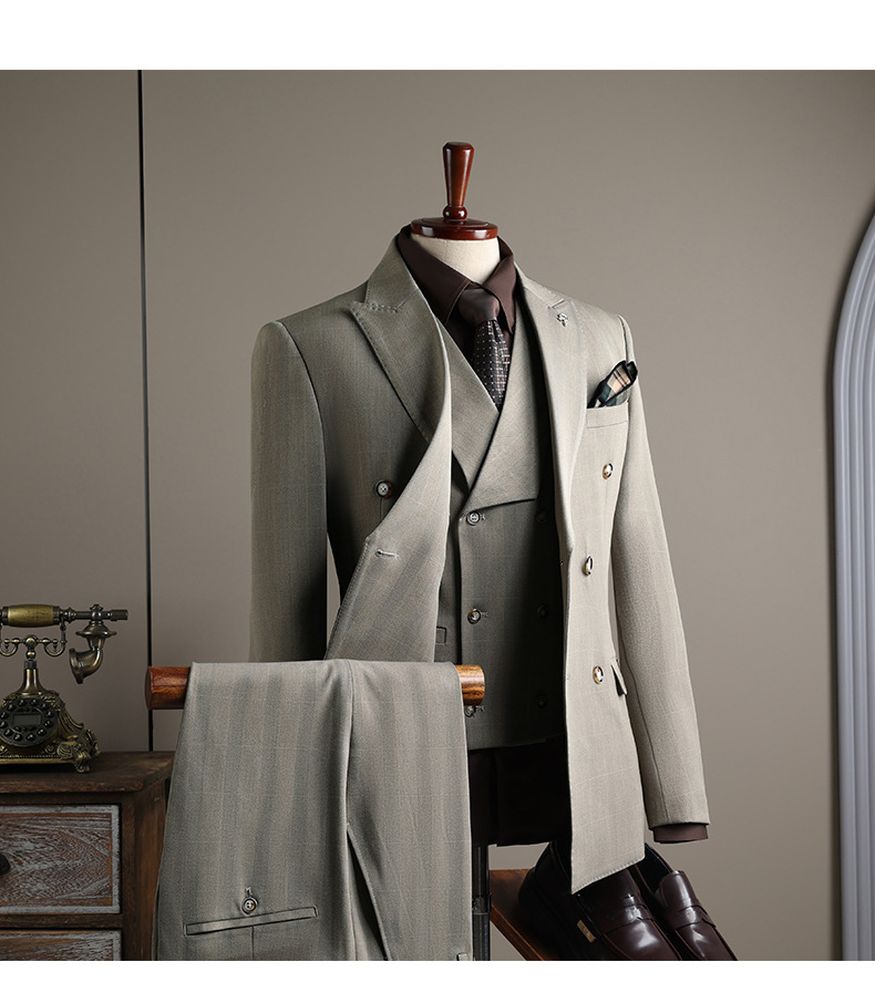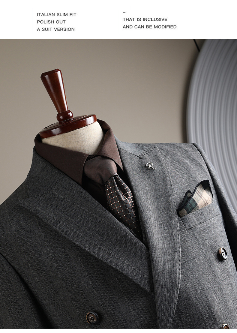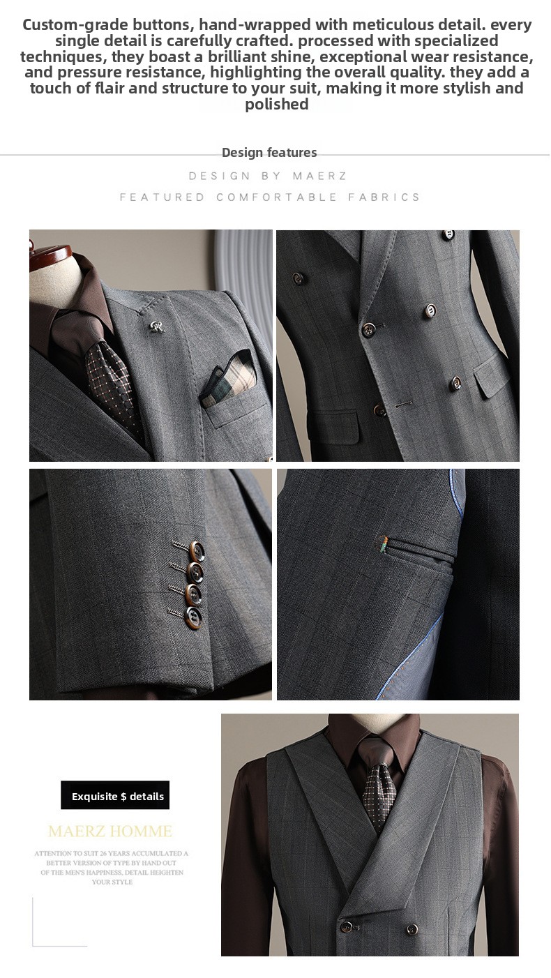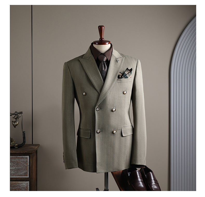 Double-row plaid design: Stylish and modern business suit with a distinctive checkered pattern.