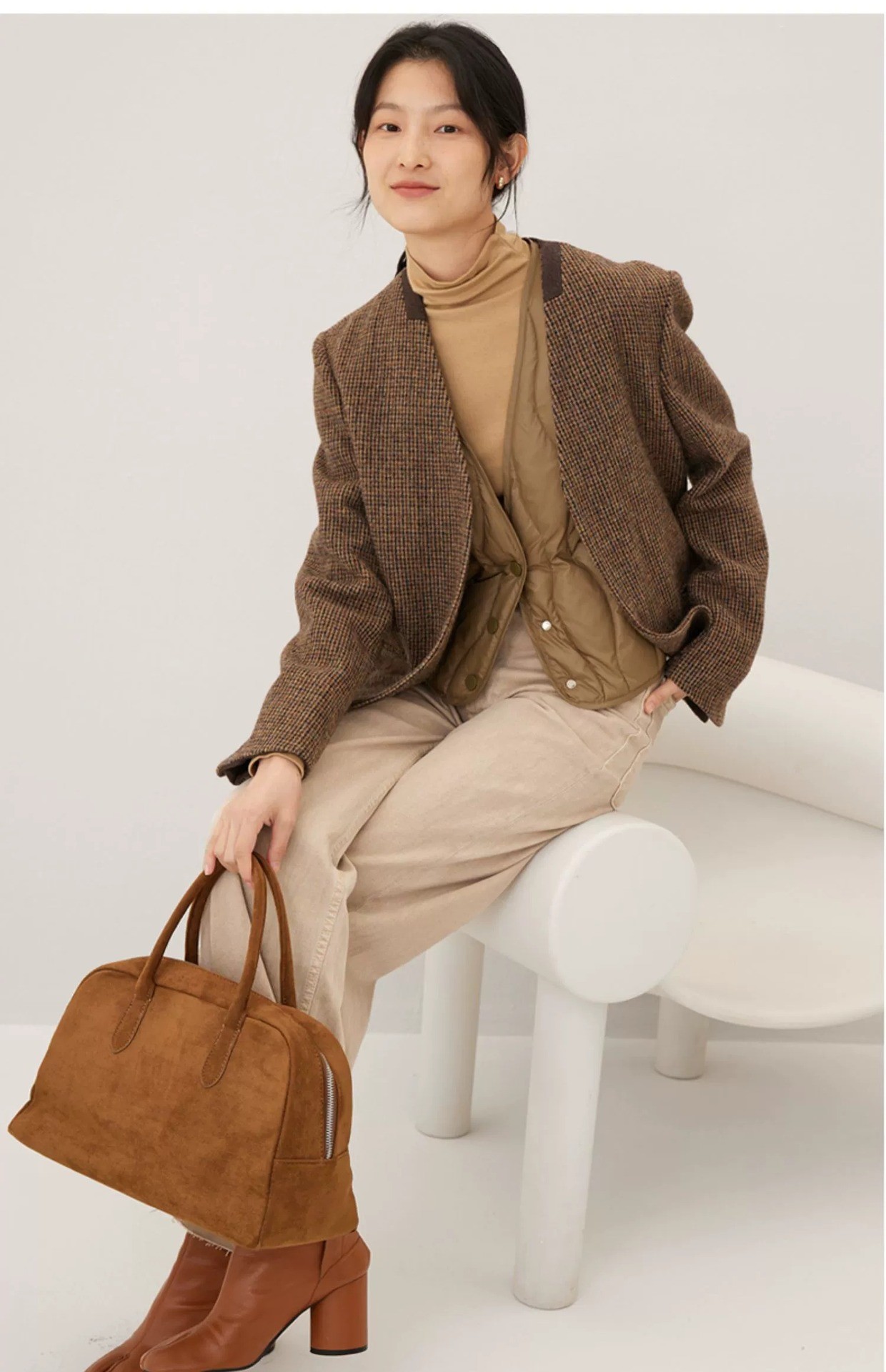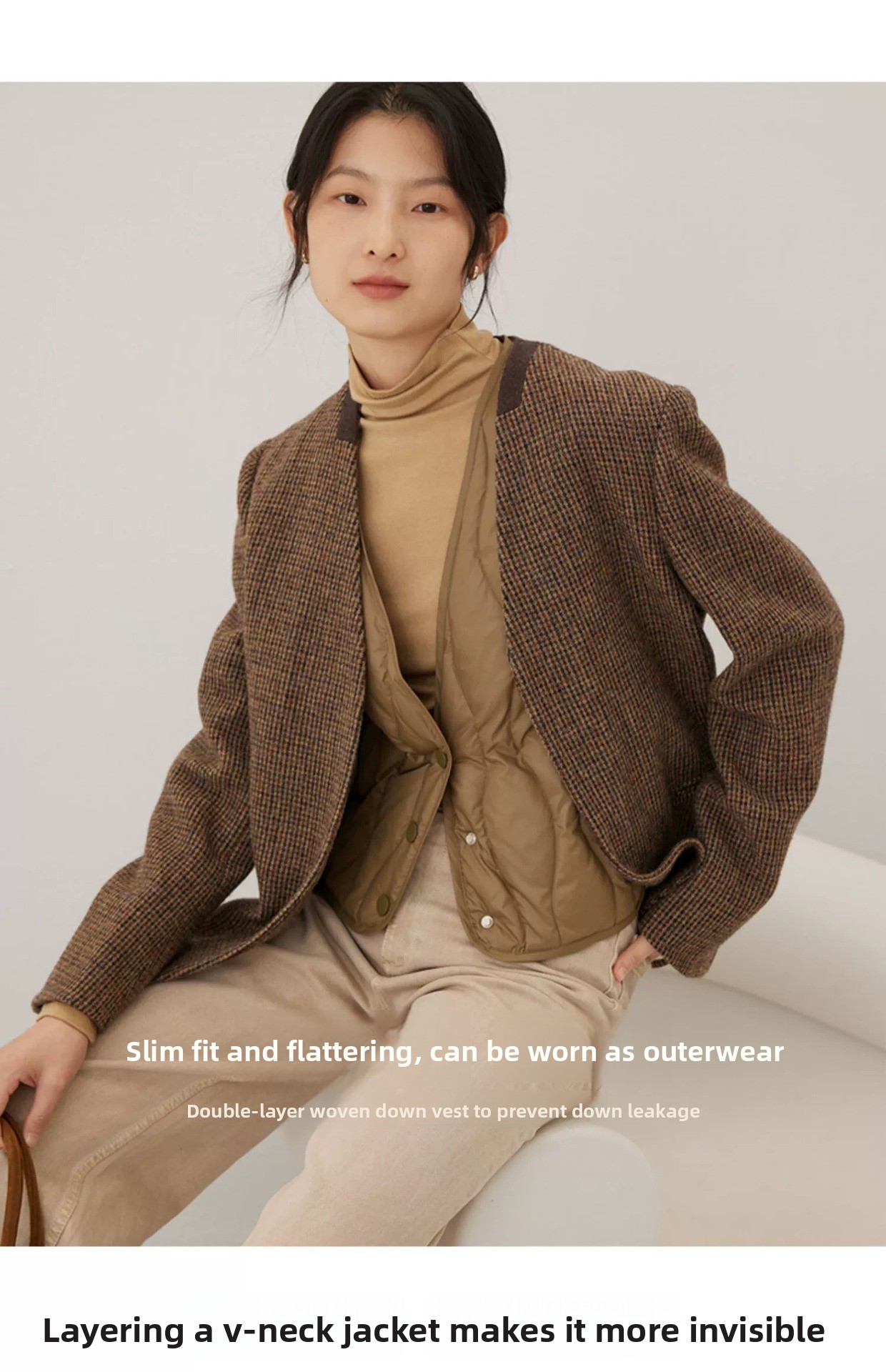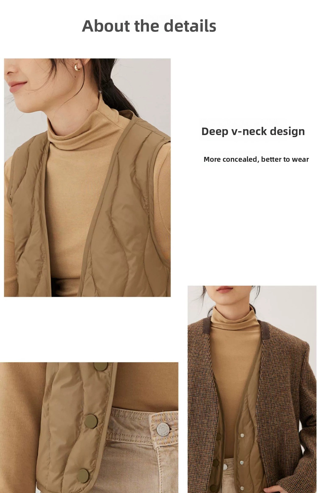 Versatile Styling: Collarless V-neck design suitable for both inner and outer wear.