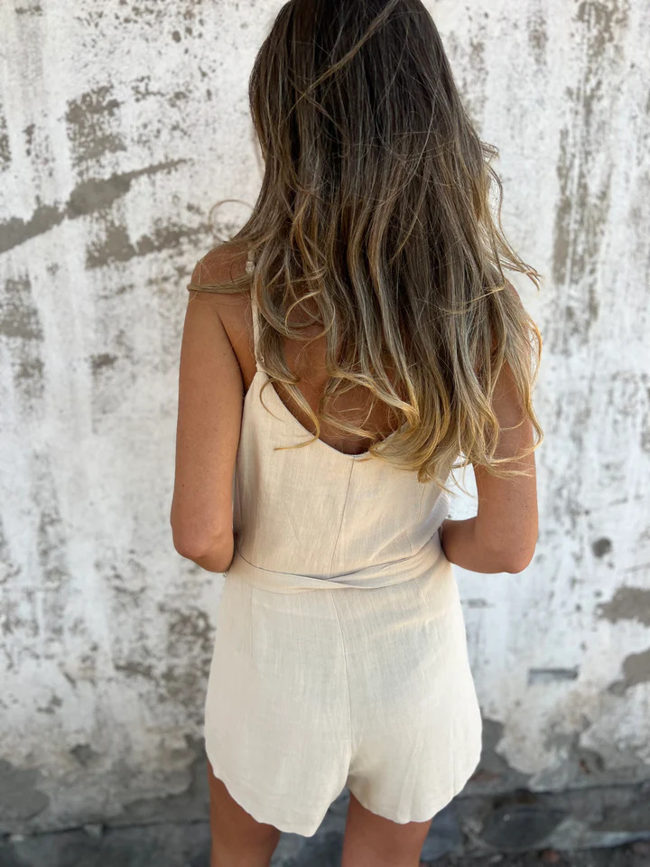 Women's Solid Color Lace-Up Cotton Linen Jumpsuit