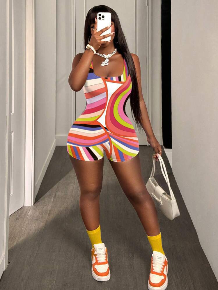 Women's Slim Printed Sleeveless Jumpsuit