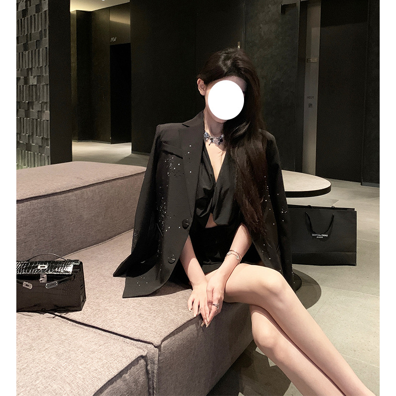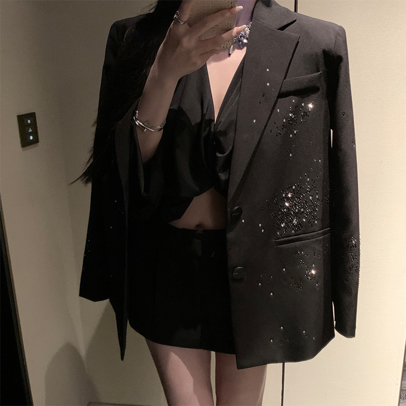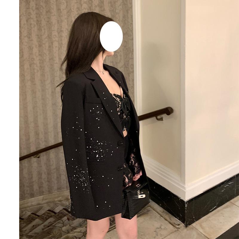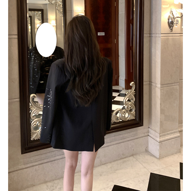 Women's Glitter Shoulder Pad Blazer Jacket