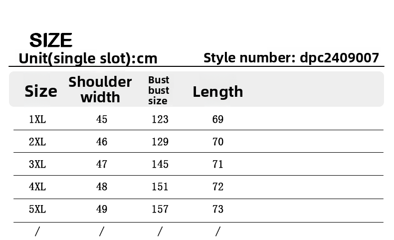 Sizes: 1XL, 2XL, 3XL, 4XL, 5XL