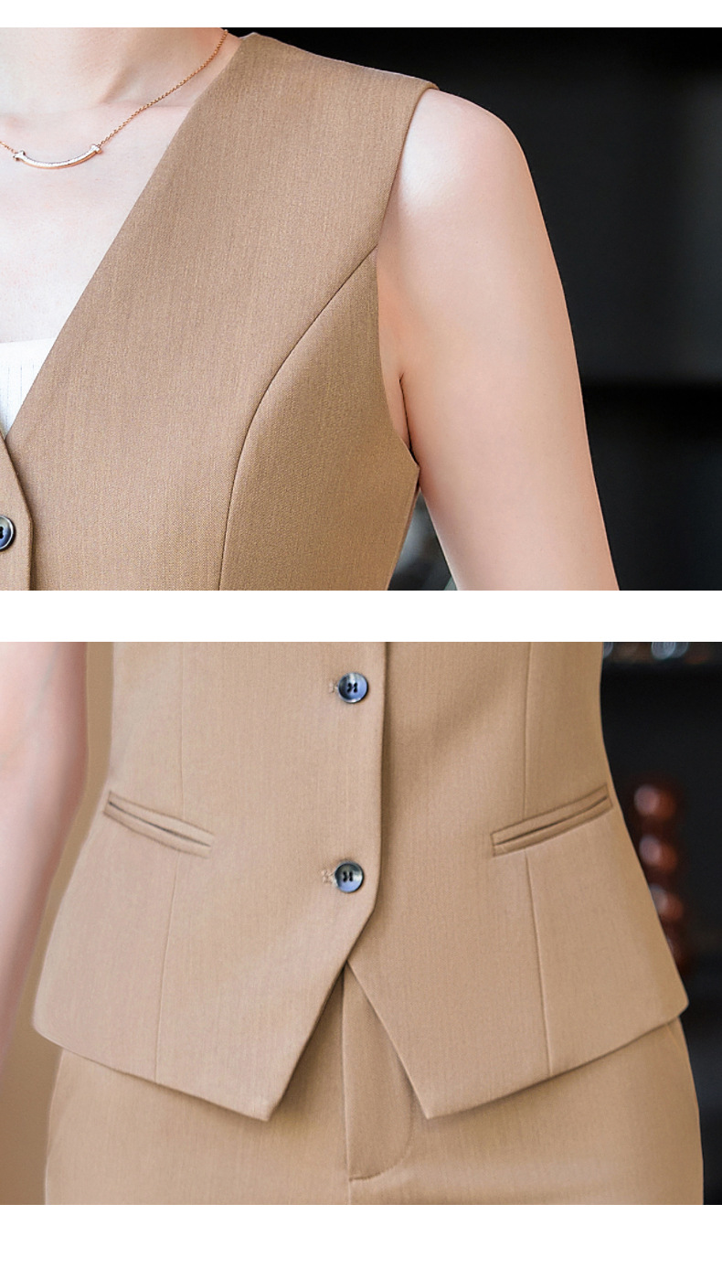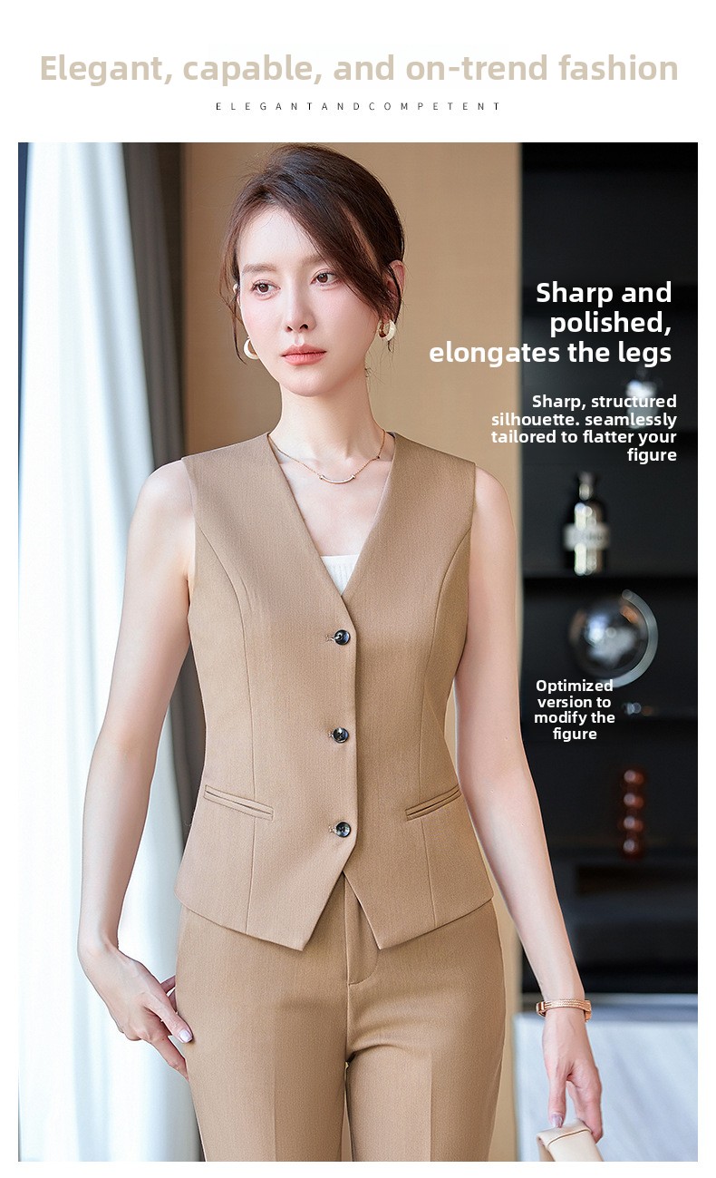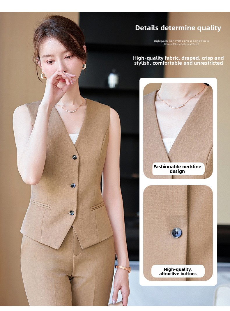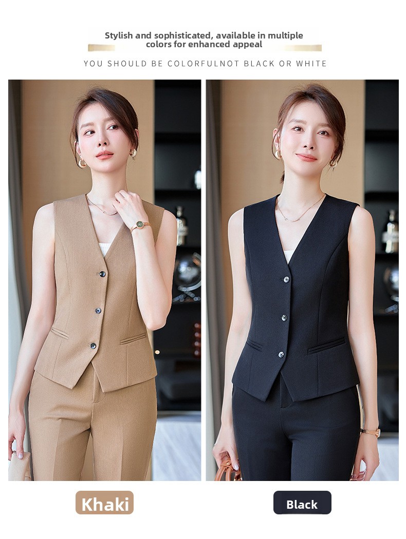 Professional Design: Tailored for workplace elegance with a V-neck collar and button accents