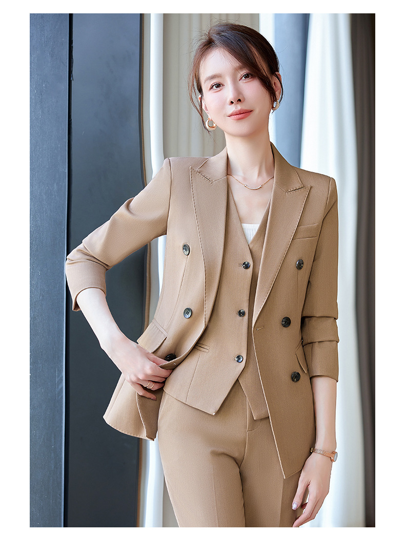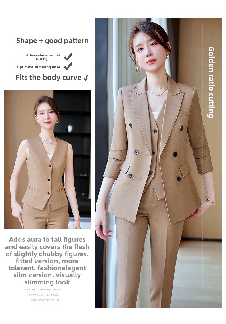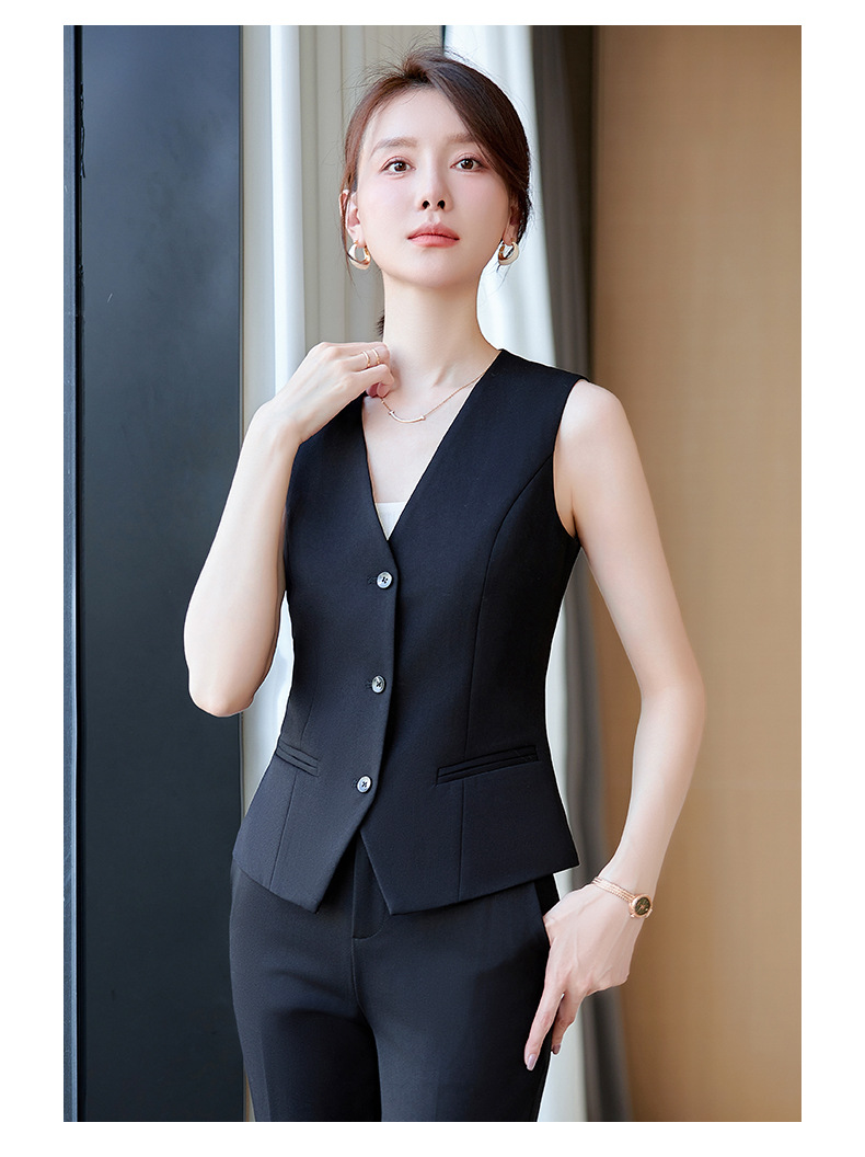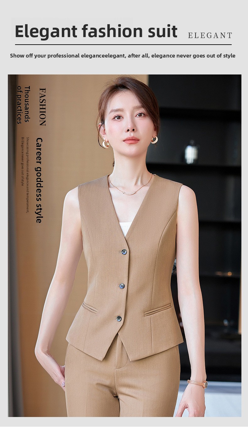 Professional Design: Tailored for workplace elegance with a V-neck collar and button accents