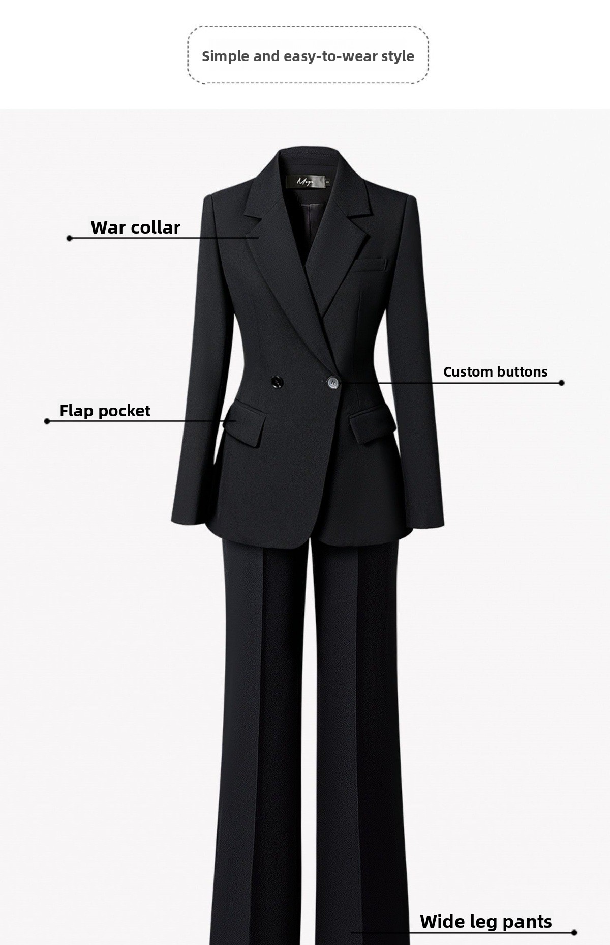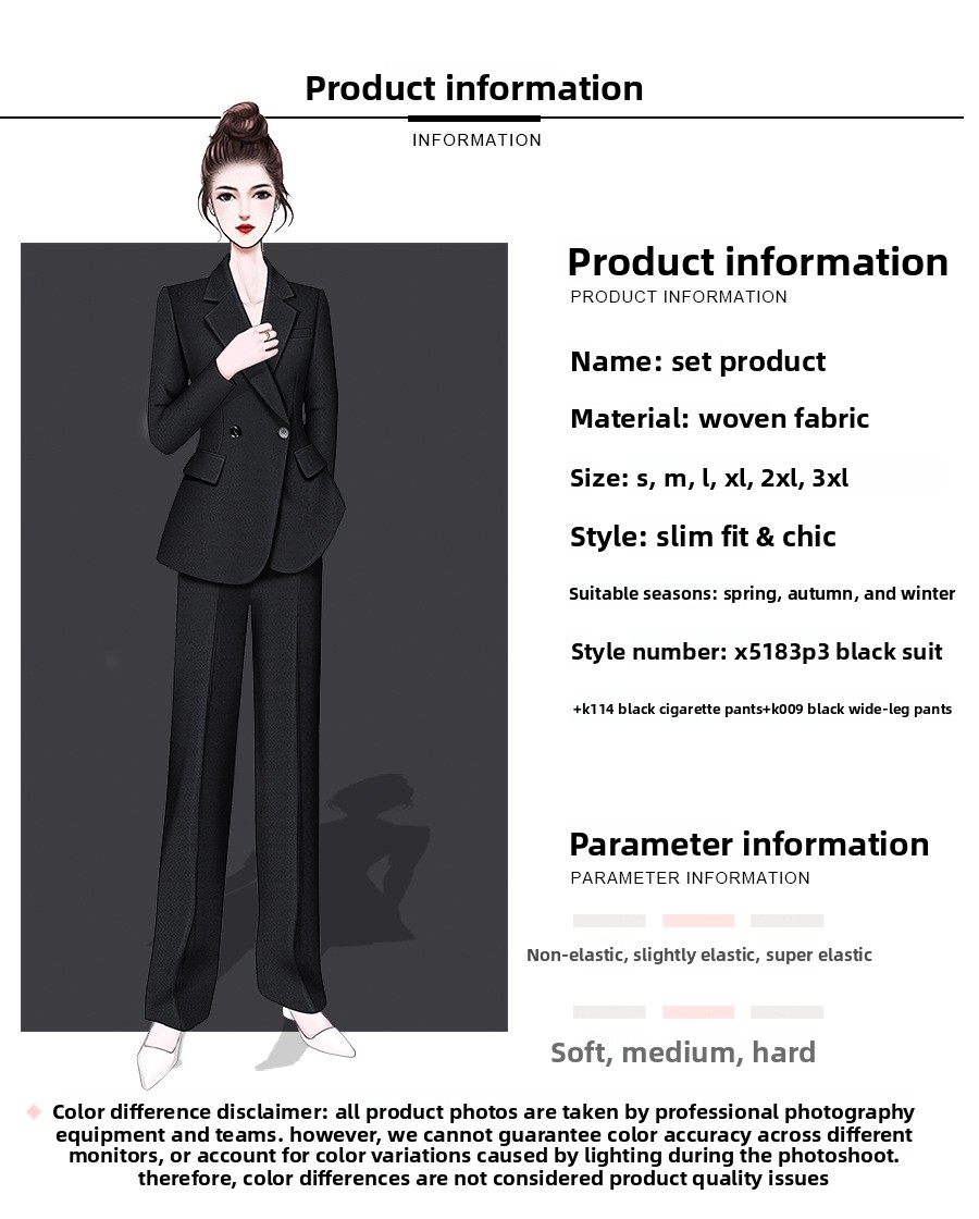 Professional design: Tailored women's suit set for formal and workplace settings, exuding elegance and sophistication.