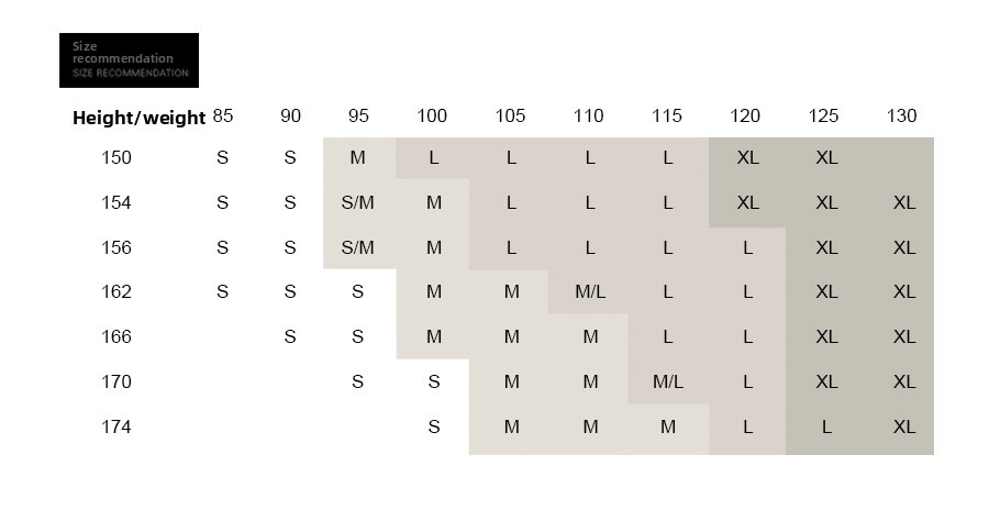 Size inclusivity: Offers a range of sizes from S to 3XL, accommodating different body weights with specific recommendations.