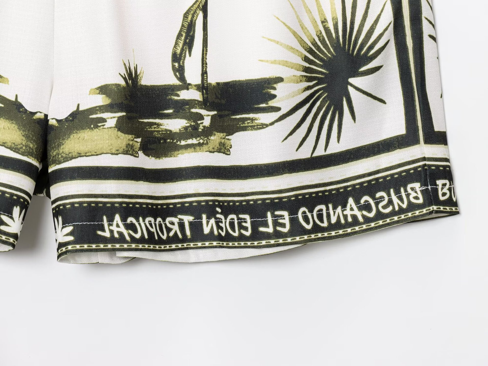 Fashionable Design: Stylish positioning printed shirt paired with casual shorts, perfect for a trendy look.