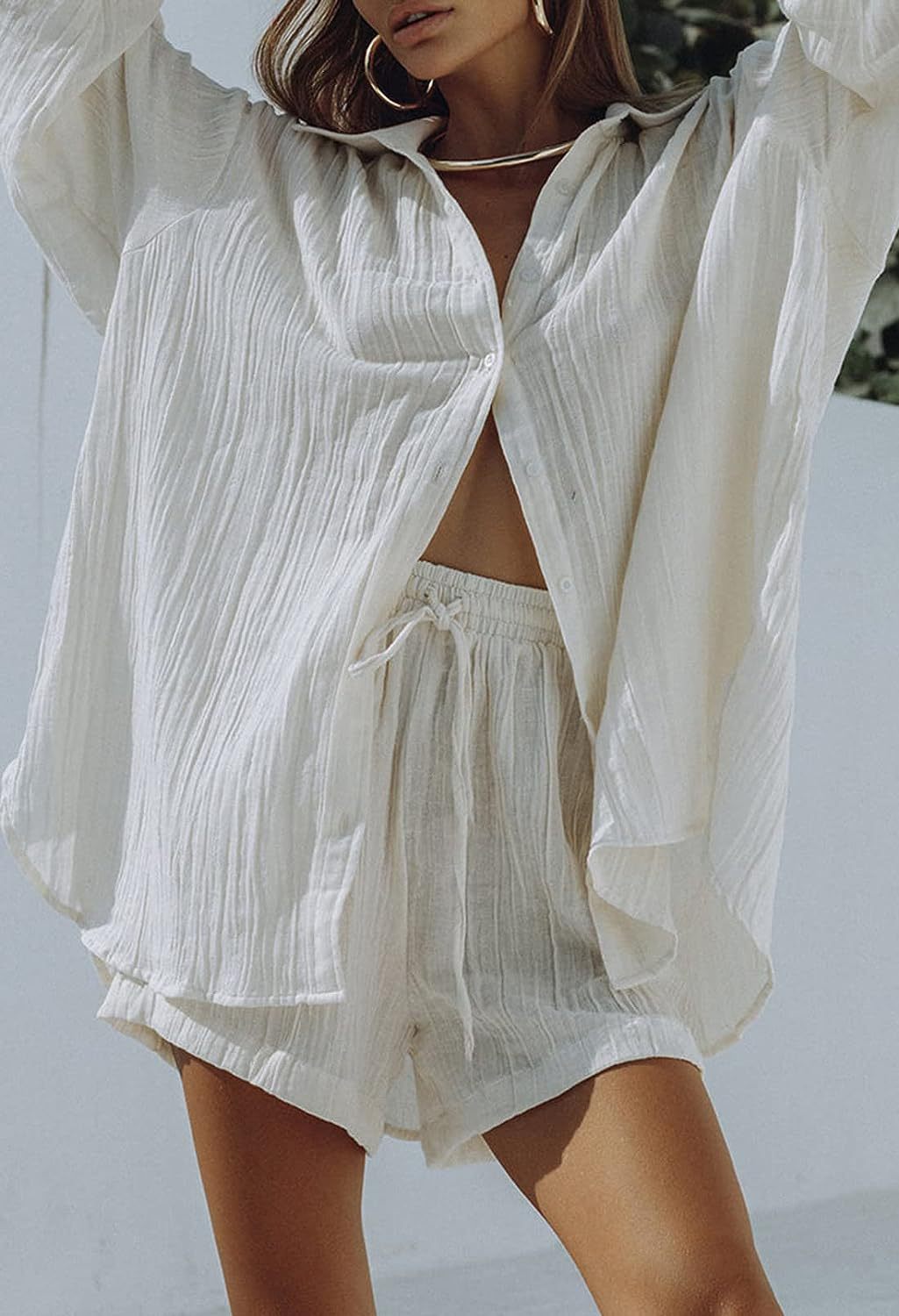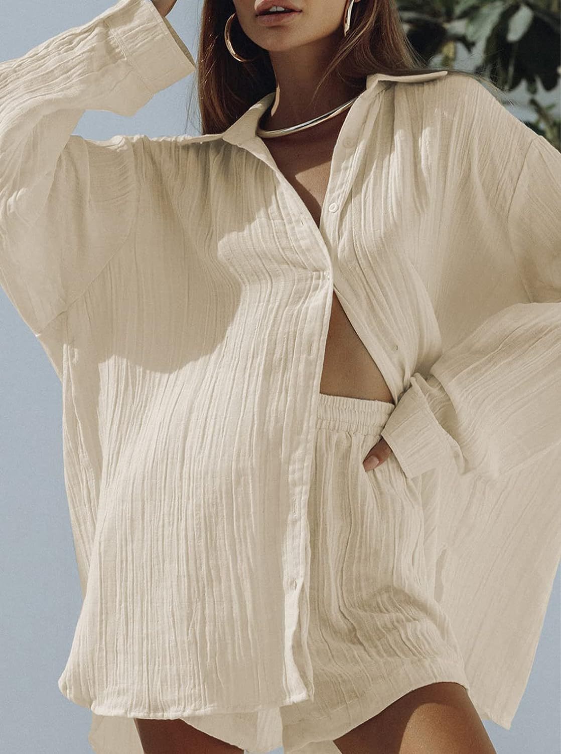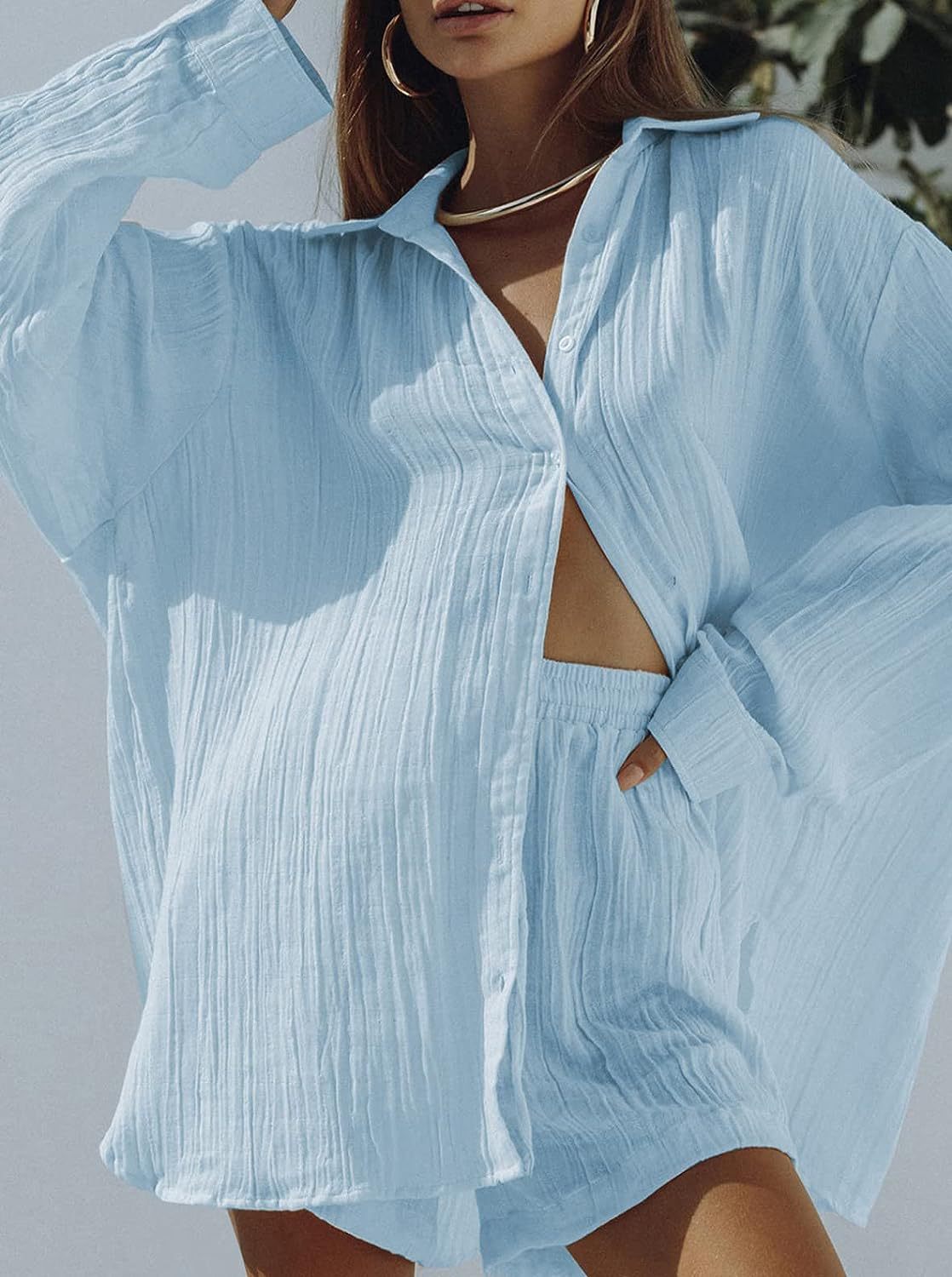 Two-Piece Set: Includes a long-sleeved shirt and cropped shorts for a coordinated look.