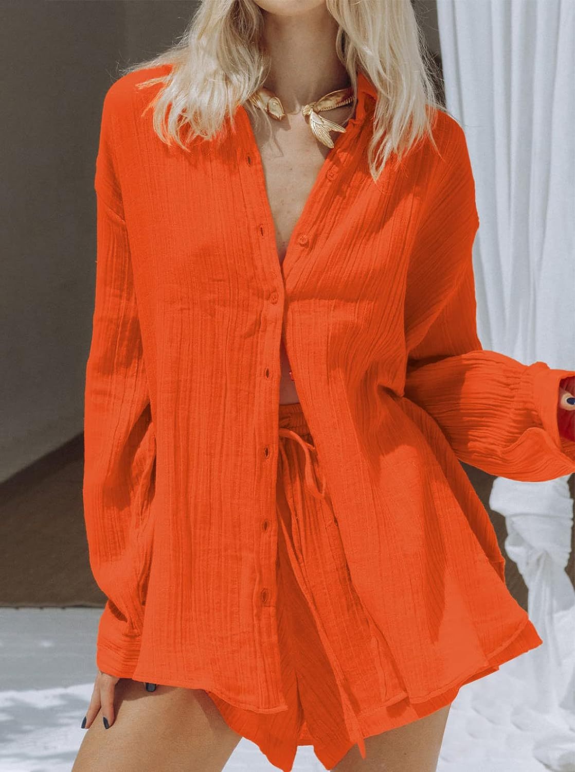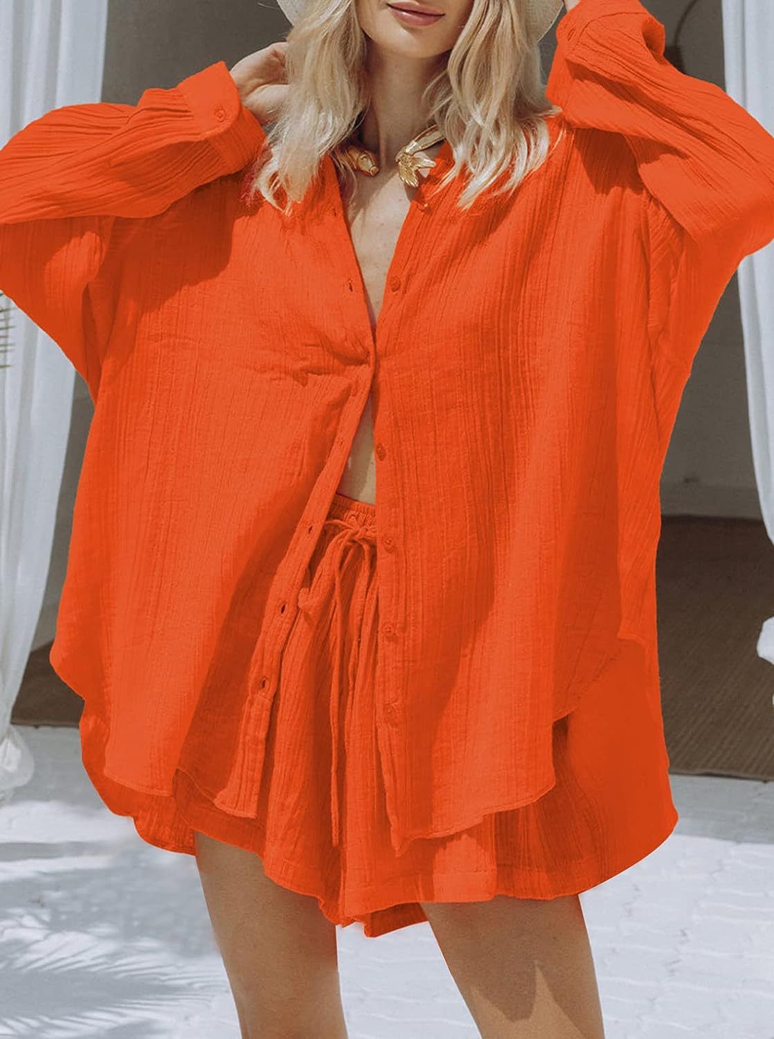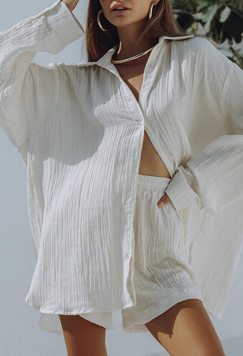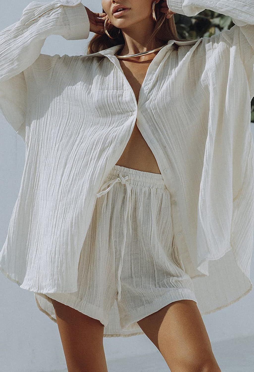 Two-Piece Set: Includes a long-sleeved shirt and cropped shorts for a coordinated look.